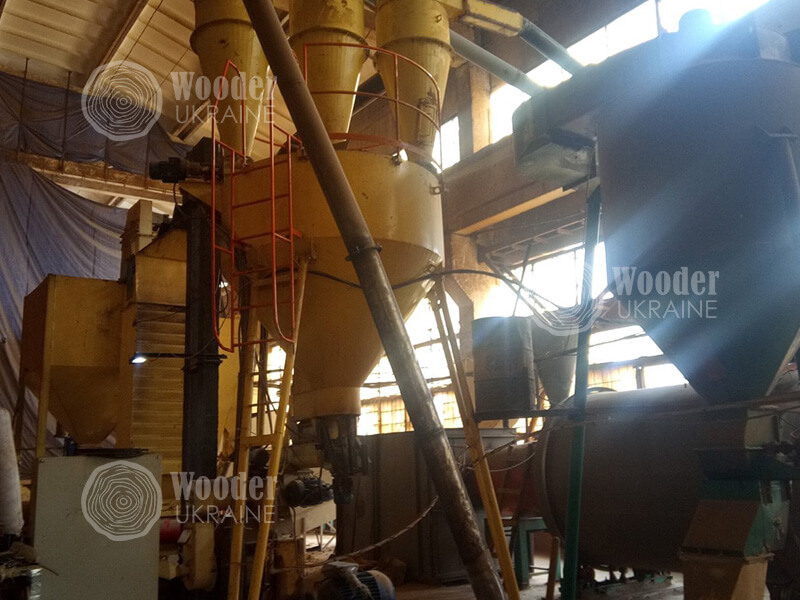 At this stage, incoming sawdust enters a complex of screening equipment, where all big inclusions are calibrated and taken off the production process for guarantee of cleanless of raw material.