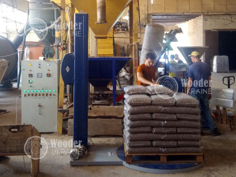 Packing in 15 kg bags is carried out in semi-automatic mode. During the packing process, the wood pellets are repeatedly sieved from the fine crumb for the minimum dust content in bags.
